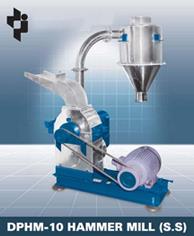 The D. P. Hammer Mill comprises of a heavy duty Mild Steel fabricated body (alternatively stainless steel construction can be provided in hammer mill wherever necessary). The grinding chamber of hammer mill is lined with serrated wear plates, which protects the body from wear and tear. A balanced rotor in hammer mill with a set of Swing Hammers accelerates the grinding process. The screen classifier forms the lower half of the grinding chamber of hammer mill. The blower in hammer mill is driven on a separate shaft with the help of a 'v' belt adjustable driven from the rotor shaft.