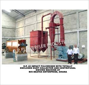 The D.P. Impact Pulveriser / Pulverizer is a versatile grinding unit of heavy and rugged construction and built for continuous operation day after day. The unit is especially designed for the medium fine, and fine size reduction. The Pulverisers meet most capacity requirements and lend themselves to a wide degree of adjustments with fineness of the finished product ranging from about 60 mesh to bulk passing through 325 mesh, depending on a considerable extent to the particular material being handled. Unlike an ordinary hammer mill, it has no screens to break, wear out or clog in the crushing chamber. The D. P. Impact Pulverizers combines grinding, classifying and conveying all in one single unit.