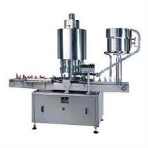 The feed container moving on conveyor belt are feed into an in-feed star wheel, bringing the container below the sealing head in the subsequent indexing part, mean while the rotating head pickup a cap from the cap star wheel which is receiving from delivery chute of cap filling bowl, where the body and the neck of the container are positioned below the rotating head, where the sealing head is performing perfect operation of sealing, rotating head is design to seal container according to pre-set torque.